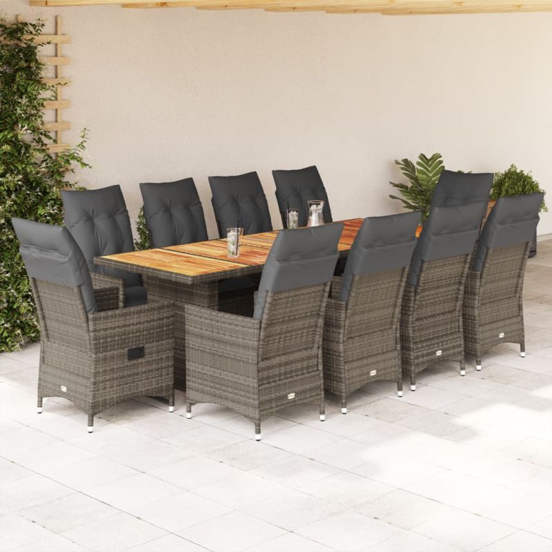 Градински бистро комплект с възглавници 11 части сив полиратан