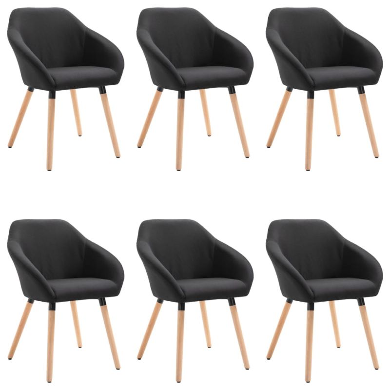 Изработен от качествен текстил, този комплект от 6 трапезни стола е естетически и ергономично проектиран, за да внесе уютен акцент в дома ви. Той осигурява удобно място за вечеря на вашето семейство в трапезарията или за четене и почивка във всекидневната. Благодарение на плътно подплатената седалка, подлакътници и облегалка, нашите столове със сигурност ще ви предоставят оптимален комфорт при седене. В допълнение, черният метал и краката от дървен масив добавят изключителна стабилност и гарантират отличната устойчивост на столовете. Доставката включва 6 трапезни стола.