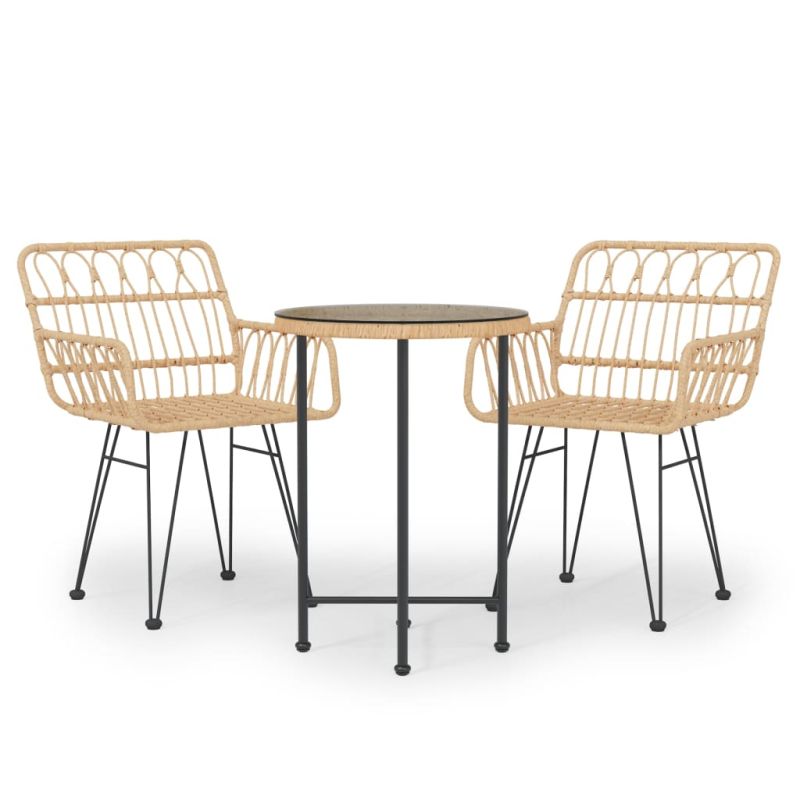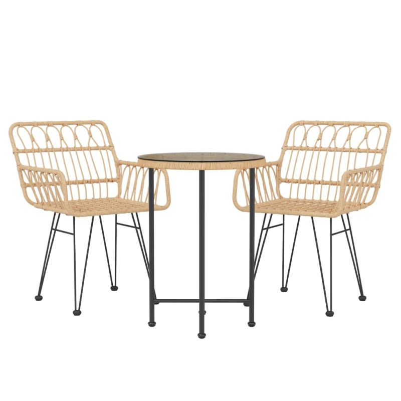 Създайте завладяваща и сплотена естетика във вашето външно пространство с този градински трапезен комплект! Издръжлив материал: PE ратан, известен също като полиратан, е устойчив на атмосферни влияния и лесен за почистване. Той остава красив отвън за дълъг период от време. Предлага отлично качество, удобство и естетичен вид.Здрава и стабилна рамка: Стоманените рамки правят комплекта за вътрешен двор здрав и стабилен за ежедневна употреба на открито.Практичен плот: Гладкият плот на трапезната маса е изработен от закалено стъкло, което се почиства лесно с влажна кърпа. В допълнение, здравият плот е идеален за поставяне на ястия, напитки и други декоративни елементи.Удобни места за сядане: Трапезният стол е проектиран с облегалка и подлакътник, за да ви предложи удобно изживяване при сядане.Практични подложки за краката: Бистро комплектът се предлага с подложки за крака, които му помагат да стои по-стабилно на земята. Забележка:Забележка: За да удължите живота на вашите градински мебели, ви препоръчваме да ги защитите с водоустойчиво покривало.Всеки продукт се доставя с ръководство за сглобяване в кашона за лесно сглобяване. Максимално 110 кг на седалка.