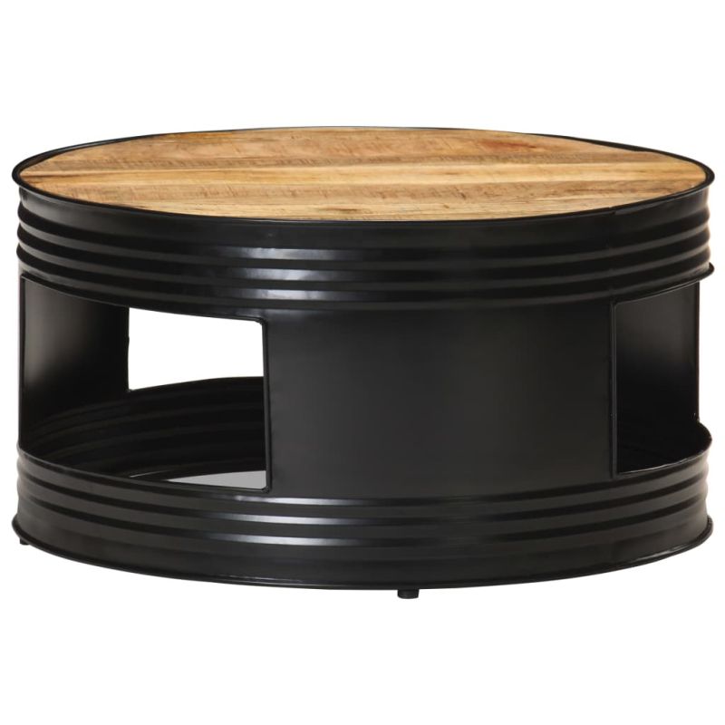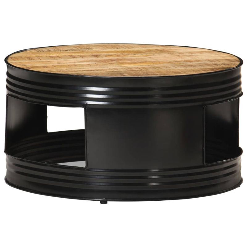 Маса за кафе, черна, 68x68x36 см, грубо мангово дърво масив