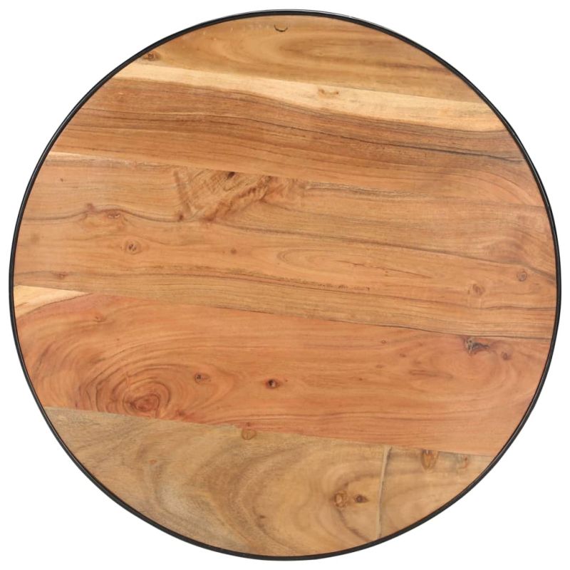 Тази дървена масичка за кафе с практичен дизайн е идеална за внасяне на класическо присъствие във вашия хол или офис. Тази централна маса е изработена от акациево дърво масив с естествен финиш, което представлява твърда дървесина с плътни шарки. Масивното акациево дърво има силата да понесе тежестта, както и да издържа на износването на времето. Тази красиво проектирана дървена холна маса е стабилна, издръжлива и атрактивна. Здравата прахово боядисана желязна рамка също допринася за нейната трайност. Дървеният плот е идеален за поставяне на напитки, вази, купи с плодове или декоративни елементи. Освен това пространството под плота на масата предоставя достатъчно място за подреждане и съхраняване на вашите списания, книги и други дребни вещи на достъпно място. Важна забележка: Цветовете на всеки артикул варират, което прави всяка мебел уникална. Доставката е на случаен принцип.