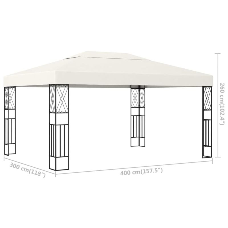 Тази просторна шатра ще бъде елегантно допълнение към вашето външно жилищно пространство, като същевременно предостави на семейството и гостите ви сянка при слънчеви дни. Конструираният с възможност за вентилация покрив няма да позволи слънцето и дъждовете да развалят забавленията по време на семейни събирания, барбекюта, следобедни пикници и рождени дни. Шатрата има здрава стоманена конструкция с декоративни кръстосани детайли и полиестерен покрив. Навесът може лесно да се закрепи към рамката на шатрата. ЗАБЕЛЕЖКА: Този продукт НИКОГА не трябва да се използва при лошо време, като бурен вятър, силен дъжд, сняг, буря и т.н.