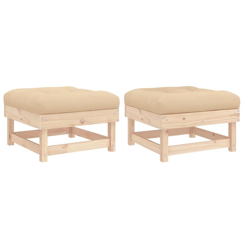 Градински табуретки с възглавници, 2 бр, борово дърво масив
