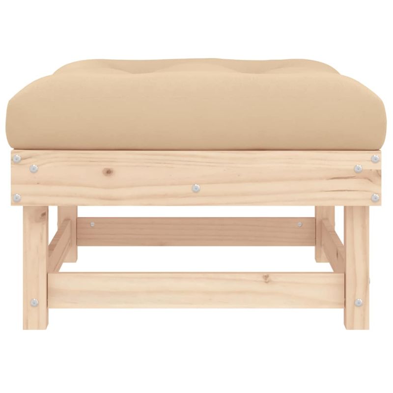 Тези дървени градински табуретки, които се отличават с дизайн на летви и меки възглавници, ще бъдат чудесно допълнение към вашата градина, вътрешен двор или тераса, за да се насладите на уютно време със семейството или приятелите си. Масивна борова дървесина: Масивната борова дървесина е красив естествен материал. Боровата дървесина е с продълговати шарки, а чеповете придават на материала характерния му рустик вид.Здрава и стабилна рамка: Дървените рамки правят табуретката здрава и стабилна за ежедневна употреба на открито.Мека възглавница: Дебело подплатената възглавница на табуретката добавя максимален комфорт.Модулен дизайн: Табуретката за открито е гъвкава и лесна за преместване. Можете да я комбинирате с други модулни сегменти в уеб магазина, за да създадете свои лични конфигурации на градински лаундж комплект! Добре е да се знае:За да сте сигурни, че вашите външни мебели ще останат красиви, ви препоръчваме да ги защитите с водоустойчиво покривало. Максимално 110 кг на седалка.