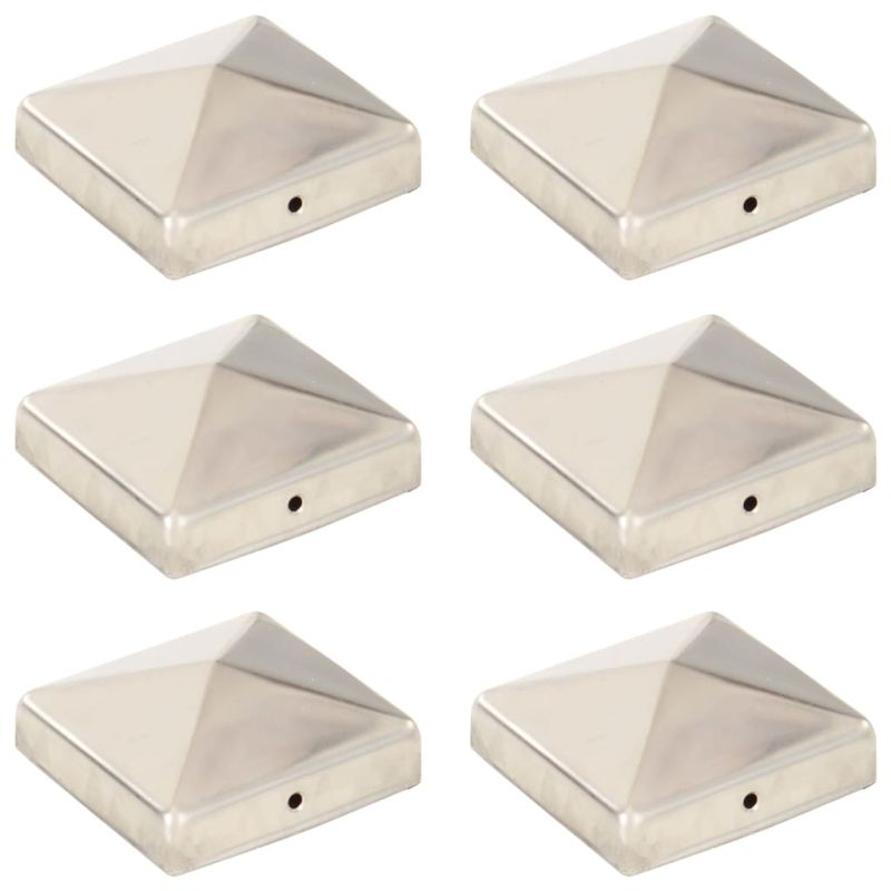Пирамидни капаци за оградни стълбове 6 бр инокс 81x81 мм