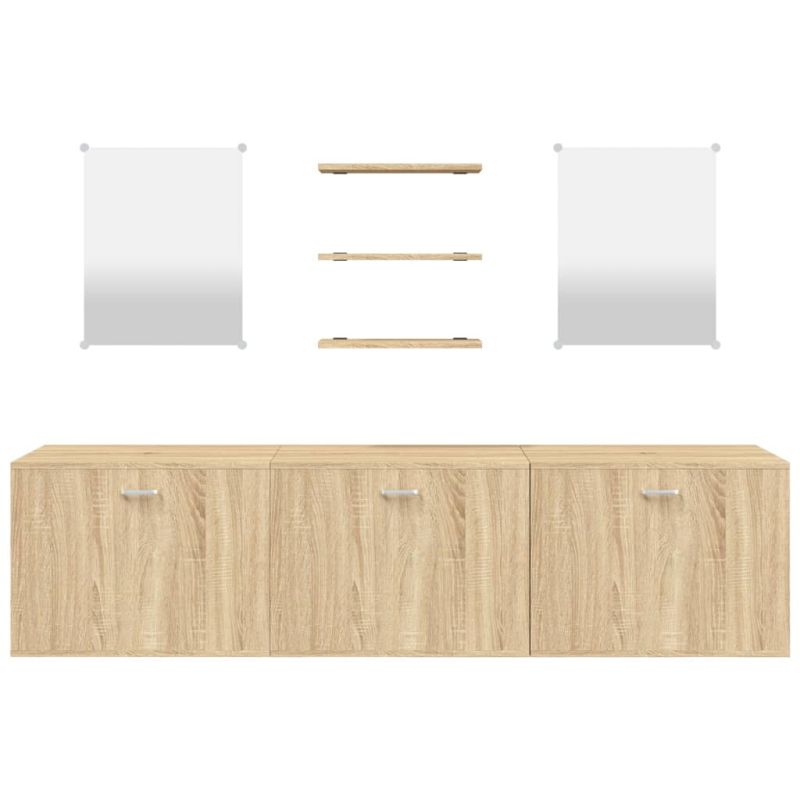 Комплект мебели за баня от 6 части, дъб, инженерно дърво