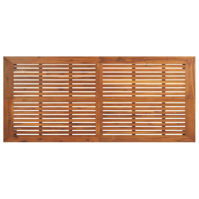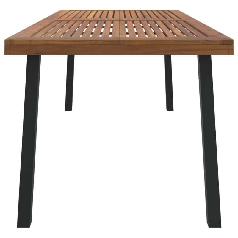 С градинската маса се насладете на приятно хранене на открито със семейството и приятелите си! Масивна акациева дървесина: Масивното акациево дърво е красив естествен материал. Акациевото дърво е тропическа твърда дървесина, която е плътна, здрава и издръжлива.Метални крака: Прахово боядисаните метални крака на външната маса осигуряват здравина и стабилност. Освен това придава индустриален вид на масата за вътрешен двор.Стабилен плот: Стабилният плот на градинската мебел е идеален за вашите ястия, напитки и закуски. Забележка:За да сте сигурни, че вашите външни мебели ще останат красиви, ви препоръчваме да ги защитите с водоустойчиво покривало.