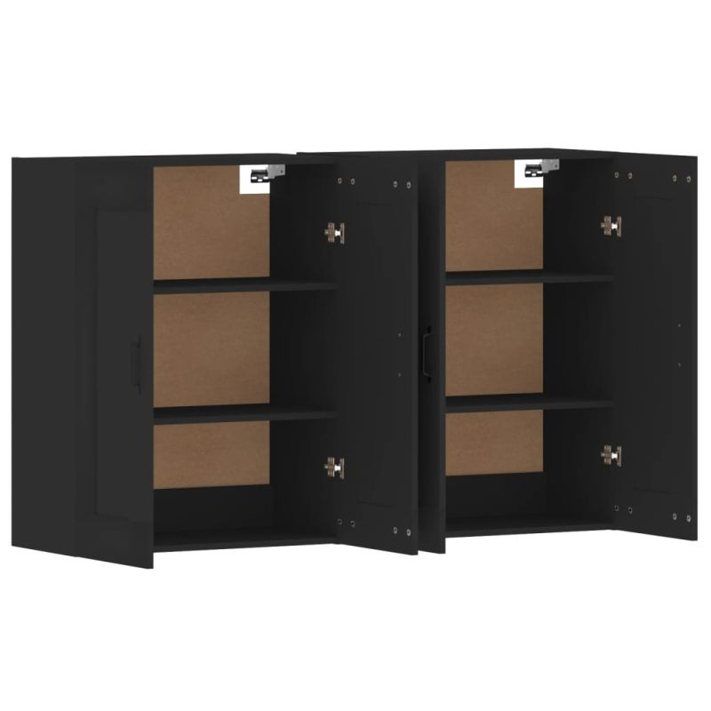 Стенни шкафове, 2 бр, черни, инженерно дърво