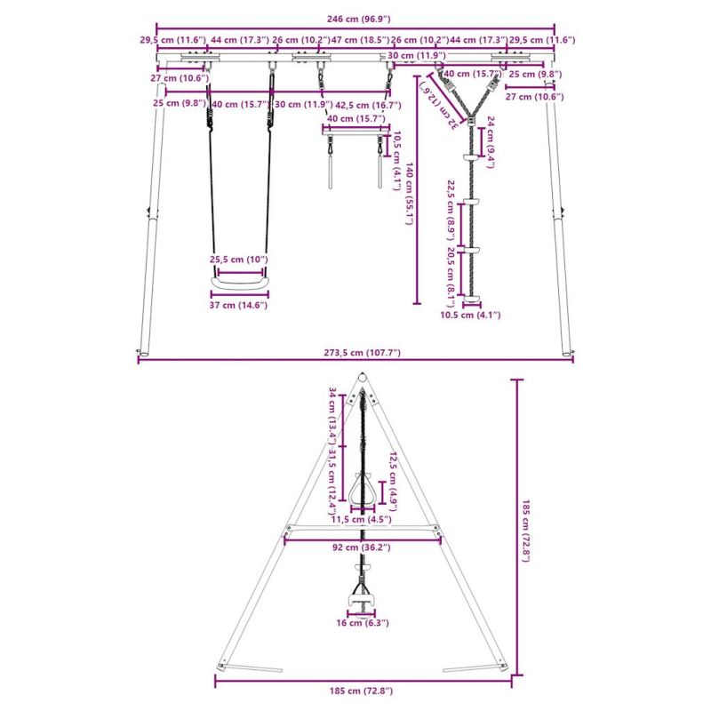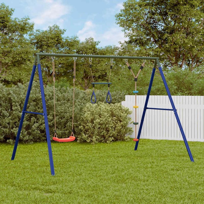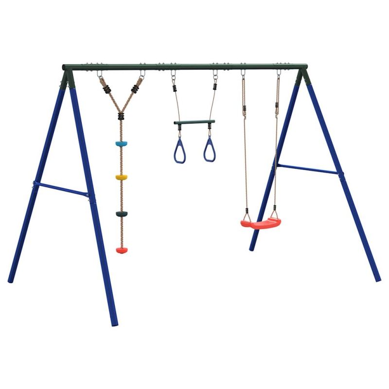 Превърнете градината си в детска площадка за вашите деца с тази външна люлка! Център за забавни занимания: Този комплект детски люлки разполага с 3 различни опции за игра със седалка люлка, люлка въже с дискове и трапец с халки за гимнастика. Така децата могат да се люлеят и катерят до насита.Издръжлива метална рамка: Тази рамка за люлка е изработена от боядисани стоманени тръби, които са устойчиви на ръжда, изключително здрави и устойчиви на деформация, осигурявайки отлична стабилност и издръжливост. А-образната структура предлага здрава опора без никакво колебание.Регулируема седалка за люлка: Тази градинска люлка е проектирана да расте с вашето дете, което я прави подходяща както за малки, така и за подрастващи деца. Чрез регулиране на дължината на въжето можете лесно да се приспособите към променящите се нужди на вашето дете.Многофункционални играчки за открито за деца: Тази градинска люлка помага на децата да подобрят своя баланс, координация, ловкост, сила и издръжливост, като същевременно предоставя различни начини за игра и упражнения.Широки приложения: Тази рамка за люлка може да се постави на различни места като градини, задни дворове, детски градини, детски площадки и др. Добре е да се знае:С оглед на безопасността всяка люлка трябва да се използва само от едно дете. Предупреждение. Не е подходящ за деца под 3 години. Само за домашна употреба. GPSR