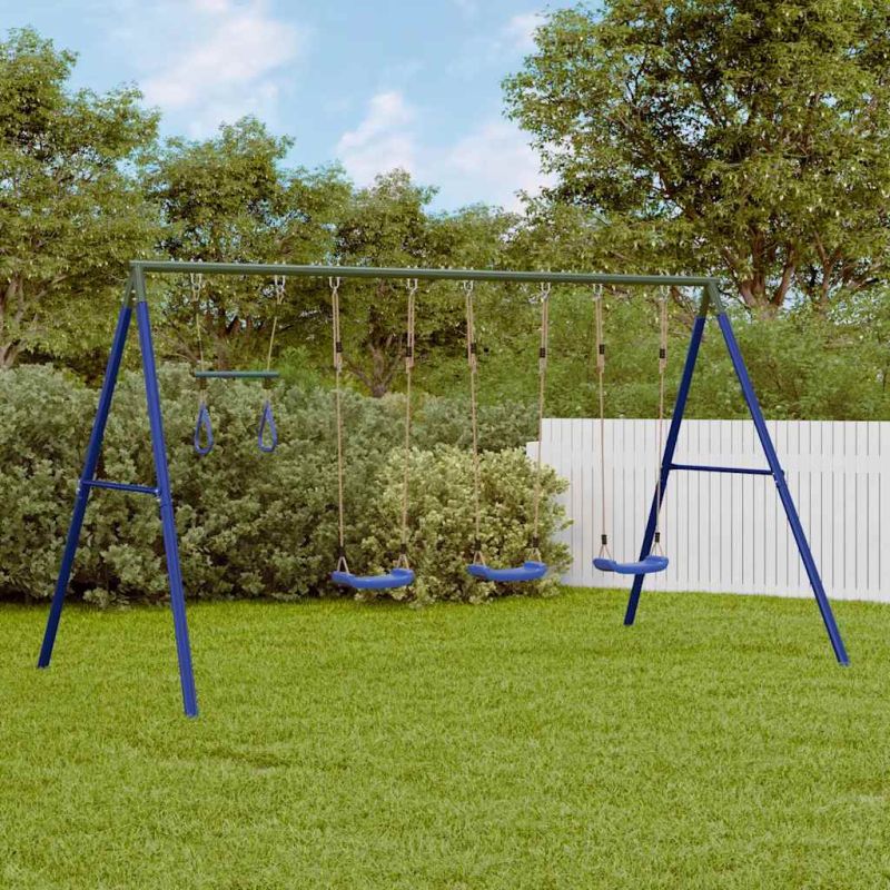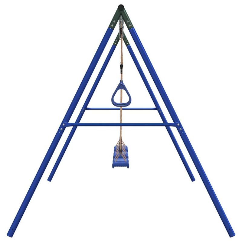 Превърнете градината си в детска площадка за вашите деца с тази външна люлка! Център за забавни занимания: Този комплект детски люлки разполага с 2 различни опции за игра с три седалки люлки и трапец с халки за гимнастика. Така децата могат да се люлеят и катерят до насита.Издръжлива метална рамка: Тази рамка за люлка е изработена от боядисани стоманени тръби, които са устойчиви на ръжда, изключително здрави и устойчиви на деформация, осигурявайки отлична стабилност и издръжливост. А-образната структура предлага здрава опора без никакво колебание.Регулируема седалка за люлка: Тази градинска люлка е проектирана да расте с вашето дете, което я прави подходяща както за малки, така и за подрастващи деца. Чрез регулиране на дължината на въжето можете лесно да се приспособите към променящите се нужди на вашето дете.Многофункционални играчки за открито за деца: Тази градинска люлка помага на децата да подобрят своя баланс, координация, ловкост, сила и издръжливост, като същевременно предоставя различни начини за игра и упражнения.Широки приложения: Тази рамка за люлка може да се постави на различни места като градини, задни дворове, детски градини, детски площадки и др. Добре е да се знае:С оглед на безопасността всяка люлка трябва да се използва само от едно дете. Предупреждение. Не е подходящ за деца под 3 години. Само за домашна употреба. GPSR