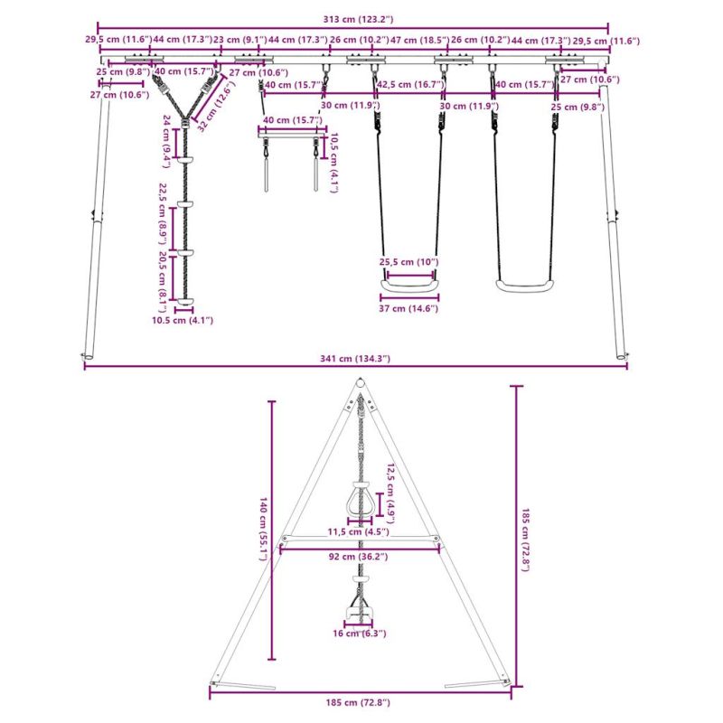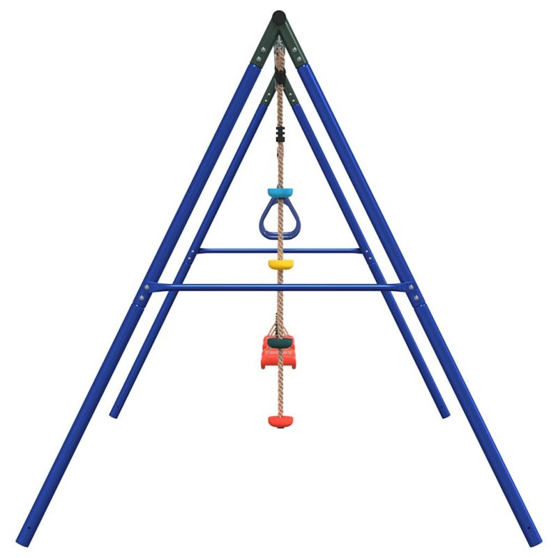 Превърнете градината си в детска площадка за вашите деца с тази външна люлка! Център за забавни занимания: Този комплект детски люлки разполага с 3 различни опции за игра с две седалки люлки, люлка въже с дискове и трапец с халки за гимнастика. Така децата могат да се люлеят и катерят до насита.Издръжлива метална рамка: Тази рамка за люлка е изработена от боядисани стоманени тръби, които са устойчиви на ръжда, изключително здрави и устойчиви на деформация, осигурявайки отлична стабилност и издръжливост. А-образната структура предлага здрава опора без никакво колебание.Регулируема седалка за люлка: Тази градинска люлка е проектирана да расте с вашето дете, което я прави подходяща както за малки, така и за подрастващи деца. Чрез регулиране на дължината на въжето можете лесно да се приспособите към променящите се нужди на вашето дете.Многофункционални играчки за открито за деца: Тази градинска люлка помага на децата да подобрят своя баланс, координация, ловкост, сила и издръжливост, като същевременно предоставя различни начини за игра и упражнения.Широки приложения: Тази рамка за люлка може да се постави на различни места като градини, задни дворове, детски градини, детски площадки и др. Добре е да се знае:С оглед на безопасността всяка люлка трябва да се използва само от едно дете. Предупреждение. Не е подходящ за деца под 3 години. Само за домашна употреба. GPSR