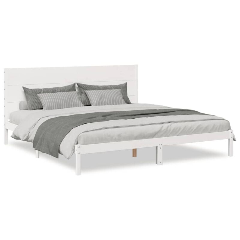 Рамка за легло без матрак, бял, 180x210 см, масивна дървесина