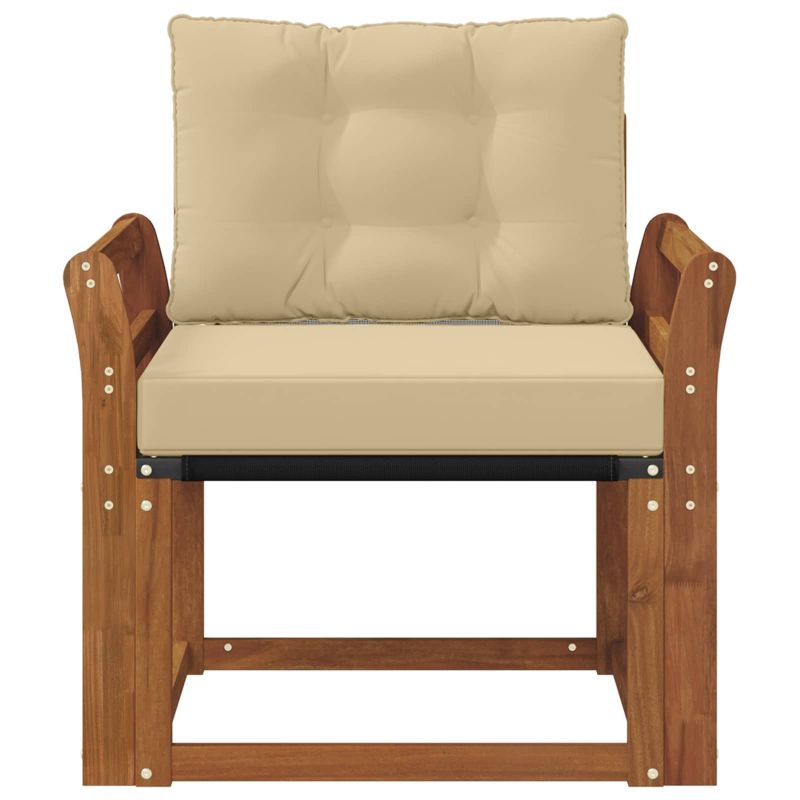 Този комплект мебели за външно ползване съчетава стил и удобство, придавайки елегантен вид на градината или терасата. Със своя модерен дизайн и минималистичен стил, той е идеален за отпочиване на открито и социални събирания. Направен е от масивна акациева дървесина, осигуряваща дълготрайност и приятно излъчване. Издръжлива масивна акациева дървесина: Този комплект е здрав и устойчив на външни условия, като предлага стабилна основа и добавя визуален чар на градината или терасата. Устойчиво на атмосферни условия проектиране: Лаковото покритие осигурява защита срещу слънце и малко дъжд, като помага за запазване на външния вид и функционалността. Компоненти и дизайн: Всеки детайл е проектиран както за стил, така и за комфорт. Съгласуваният дизайн изглежда визуално приятно на всяко открито събитие. Комфорт и универсалност: Модулната структура позволява различни конфигурации, удобни за всякакви поводи — от релаксиране до социални събирания. Лесна поддръжка: Просто почиствайте с влажна кърпа и избягвайте агресивни почистващи препарати, за да запазите мебелите в добро състояние.