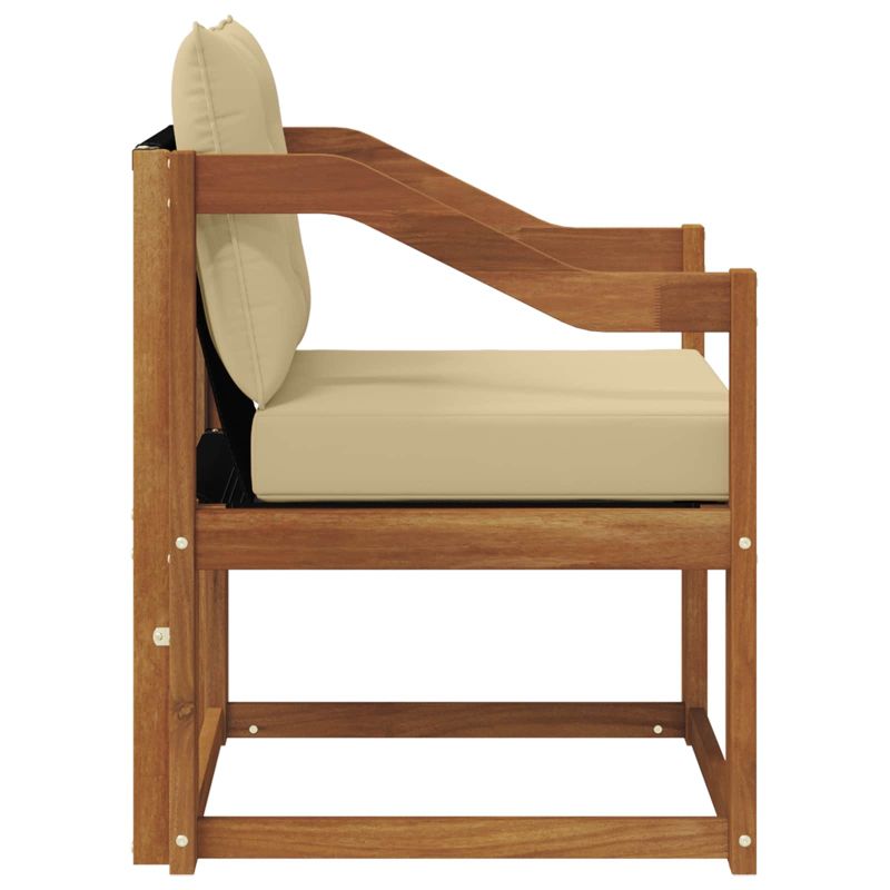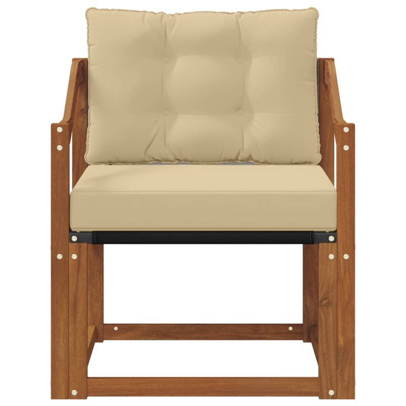 Този комплект мебели за външно ползване съчетава стил и удобство, придавайки елегантен вид на градината или терасата. Със своя модерен дизайн и минималистичен стил, той е идеален за отпочиване на открито и социални събирания. Направен е от масивна акациева дървесина, осигуряваща дълготрайност и приятно излъчване. Издръжлива масивна акациева дървесина: Този комплект е здрав и устойчив на външни условия, като предлага стабилна основа и добавя визуален чар на градината или терасата. Устойчиво на атмосферни условия проектиране: Лаковото покритие осигурява защита срещу слънце и малко дъжд, като помага за запазване на външния вид и функционалността. Компоненти и дизайн: Всеки детайл е проектиран както за стил, така и за комфорт. Съгласуваният дизайн изглежда визуално приятно на всяко открито събитие. Комфорт и универсалност: Модулната структура позволява различни конфигурации, удобни за всякакви поводи — от релаксиране до социални събирания. Лесна поддръжка: Просто почиствайте с влажна кърпа и избягвайте агресивни почистващи препарати, за да запазите мебелите в добро състояние.