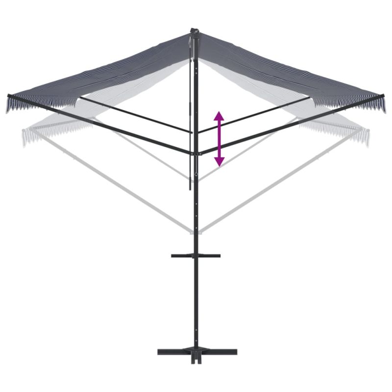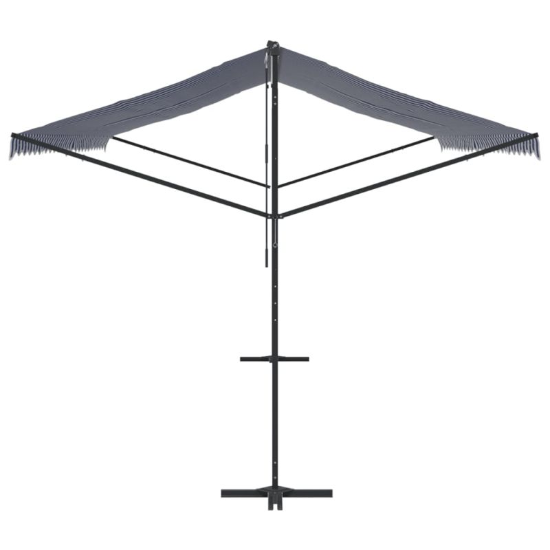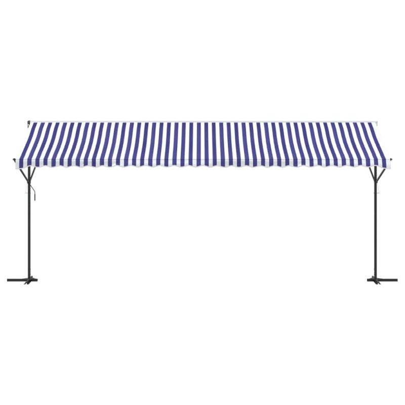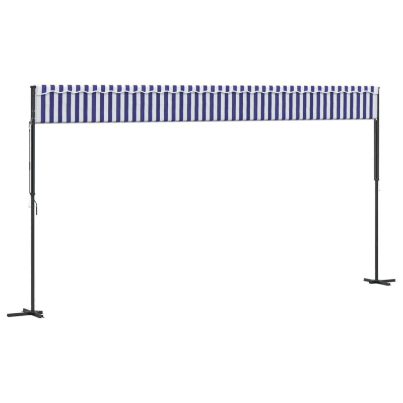 Свободностояща тента, синьо и бяло, 600x300 см, плат и стомана