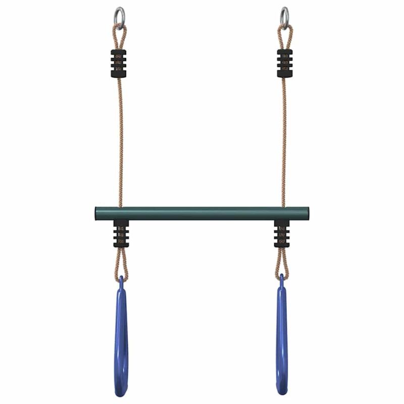 Този трапец с халки е идеално допълнение към всяка люлка или катерушка. Това е чудесен начин децата да се забавляват и да останат активни в задния двор. Тежък метален материал: Трапецовидната щанга е изработена от боядисана стоманена тръба, която е устойчива на ръжда, изключително здрава и устойчива на деформация, осигуряваща отлична стабилност и издръжливост.Фитнес халки против хлъзгане: Фитнес халките имат дизайн против хлъзгане за сигурно захващане, осигурявайки безопасност и сигурност. Безопасен и сигурен монтаж: Тази външна люлка има здрави метални монтажни пръстени на въжето, осигуряващи безопасно и сигурно закрепване към всяка рамка на люлка или други подходящи приспособления. Многофункционални играчки на открито за деца: Тази градинска люлка помага на децата да подобрят своя баланс, координация, сръчност и сила, като същевременно предоставя различни начини за игра и упражнения. Добре е да се знае: С оглед на безопасността люлката трябва да се използва само от едно дете. Рамката за люлка се продава отделно. Можете да посетите магазина, за да намерите подходящата рамка за люлка, за да завършите своя комплект люлки! Предупреждение. Не е подходящ за деца под 3 години. Само за домашна употреба.