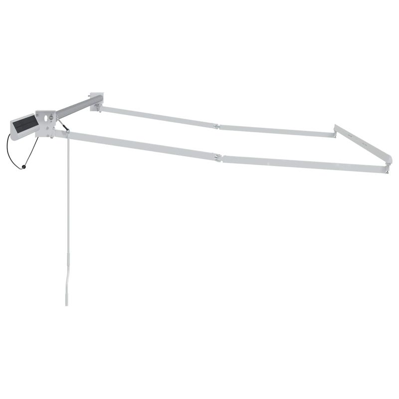 Тази електрическа рамка за сенници със соларен панел е направена, за да осигурява перфектна сянка на открито - в градини, патота или просто навсякъде навън. Можеш лесно да я управляваш, за да създадеш удобна зонa с сянка, когато комбинираш с подходяща платнина (не е включена). Структурата е практична, за да монтираш сгъваемия сенник, така че е напълно подходяща за места за сядане на открито и за всекидневна употреба. Соларно захранване: Вграденият соларен панел предлага удобен източник на енергия за рамката, като намалява нуждата от свързване към мрежата. Тази система позволява постоянна работа и е идеална за места, където няма електрическа инсталация. Дистанционно управление: С включеното дистанционно можеш да разширяваш или свиваш рамката лесно. Това прави ежедневната употреба наистина удобна. Сгъваеми рамена с манивела: Рамената се управляват с манивела, така че можеш да настройваш колко да е разширен сенникът, когато е нужно. Това помага да адаптираш сянката уникално за всяка ситуация. Стилна конструкция: Рамката е направена от прахово боядисана стомана и алуминий, което гарантира стабилност и устойчивост на всякакви условия. Тези здрави материали осигуряват дълговечна работа. Монтаж на стена: Рамката е проектирана да се монтира на стена, което ѝ осигурява стабилна основа за сенчеготови решения на открито. За безопасност е важно да се инсталира на подходящи стени за градини, тераси и места за сядане на открито.
