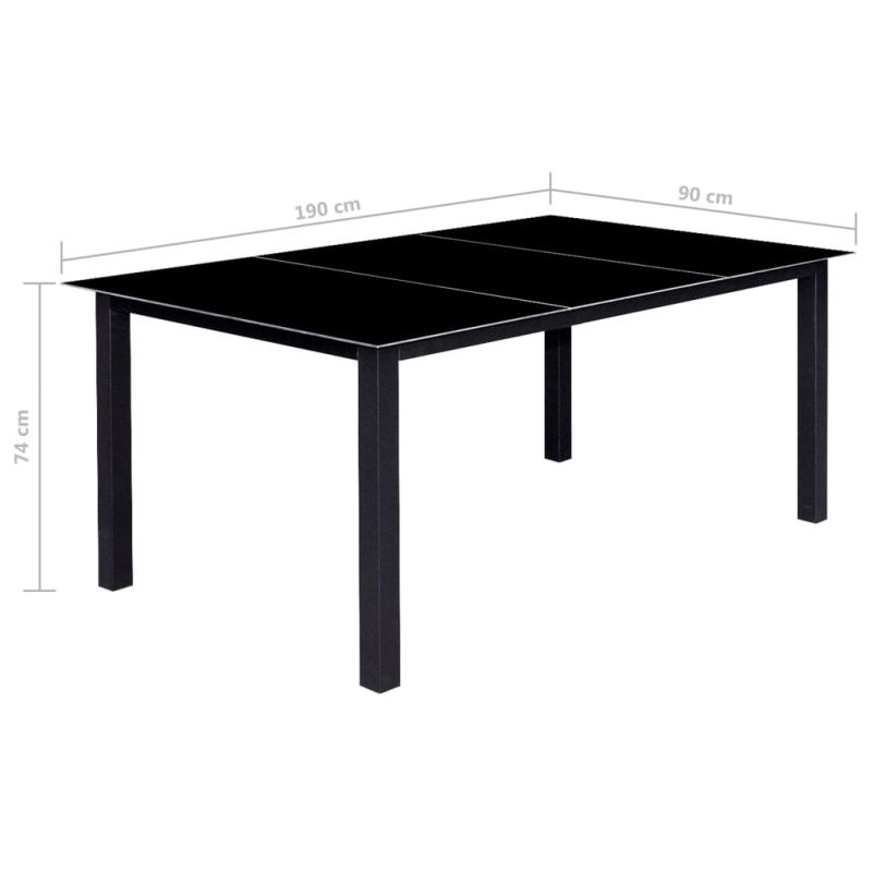 Градински трапезен комплект, 9 части, сгъваем, алуминий, черен