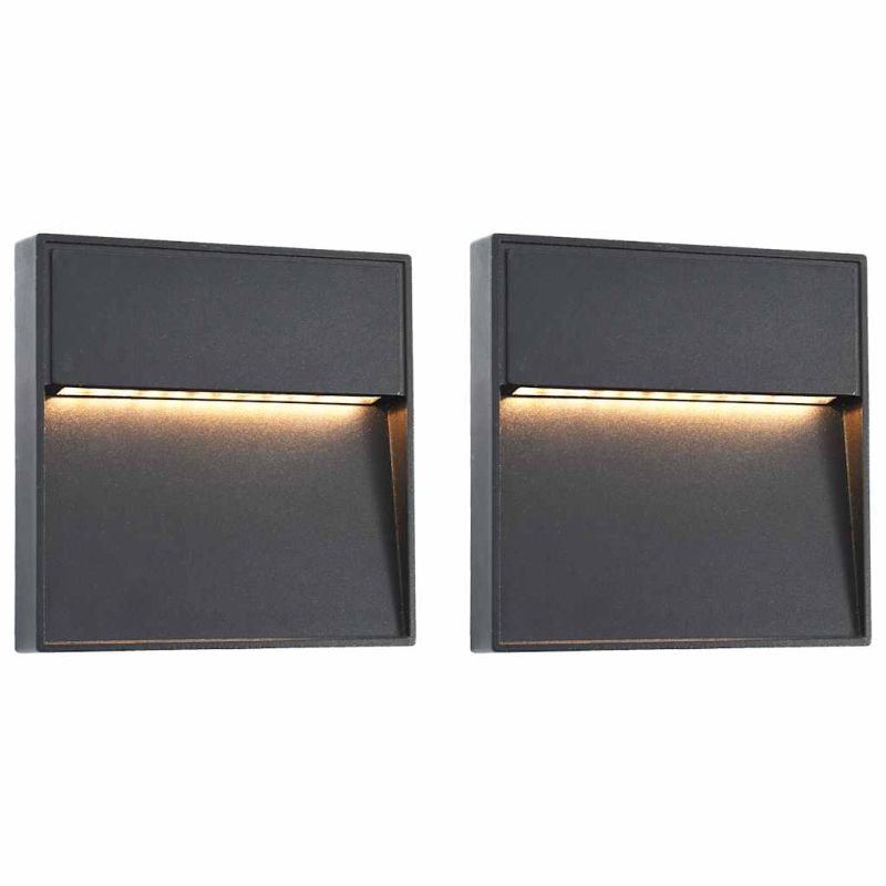 Фасадни LED аплици, 2 бр, 3 W, черни, квадратни