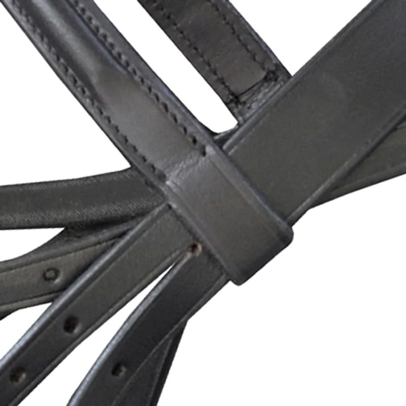 Тази юздечка, изработена от висококачествена биволска кожа, е изключително мека, с подплатен презчелник за най-удобното прилягане. Благодарение на деликатния дизайн и изпъкналия презносник, юздата има не само елегантен външен вид, но и балансирано разпределение на налягането по шията. Тази юзда с презносник има 7 нива за регулиране на дължината. Включени са кожени юзди с поводи и трензела (удило).