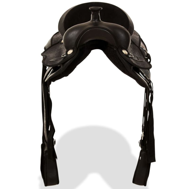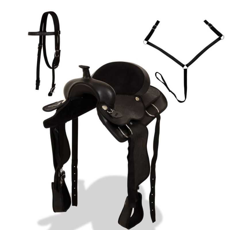 Уестърн седло, оглавник и опас, естествена кожа, 15", черно