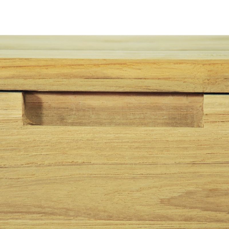 Тази масичка за кафе в колониален стил, изработена от тиково дърво масив, ще добави рустик чар към вашия интериор. Може да се използва и като странична маса, холна маса или крайна маса. Масата има здрав плот от твърда дървесина, на който можете да поставите декоративни елементи като кошница с плодове или вази. Двете чекмеджета осигуряват достатъчно пространство за организиране на всякакви по-малки предмети. Тази странична маса се поддържа от здрави крака от ковано желязо. Монтажът ѝ е много лесен. Важна забележка: Цветовете и шарките могат да варират при всяка мебел, което прави всяка от нашите маси за кафе уникална; доставката е на случаен принцип.