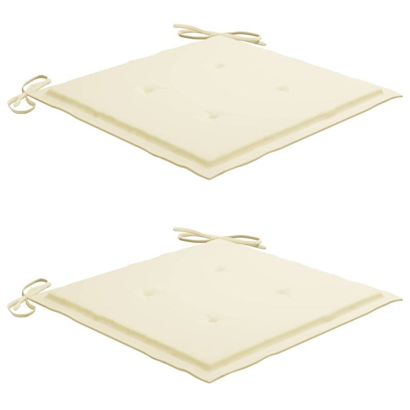 Градински столове, 2 бр, кремави възглавници, тик масив