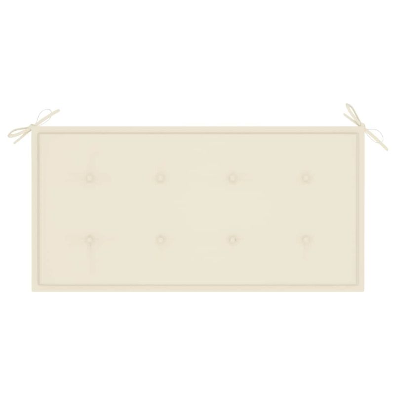Градинска пейка с кремава възглавница, 112 см, тик масив