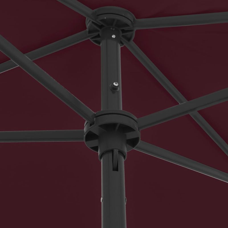 Плажният чадър е изработен от полиестер, който предпазва от ултравиолетови лъчи и не избледнява, което е хубаво да блокира вредните ултравиолетови лъчи на слънцето. Здравото ребро на чадъра може да поддържа сенника достатъчно. Този чадър може да се монтира на съществуващата стойка или в средата на маси, ако има дупки. Чадърът може да се регулира във всяка посока с функция за накланяне, което ви осигурява оптимална защита от слънцето.