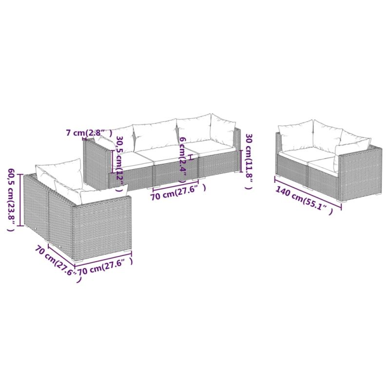 Градински лаундж комплект с възглавници 7 части полиратан сив