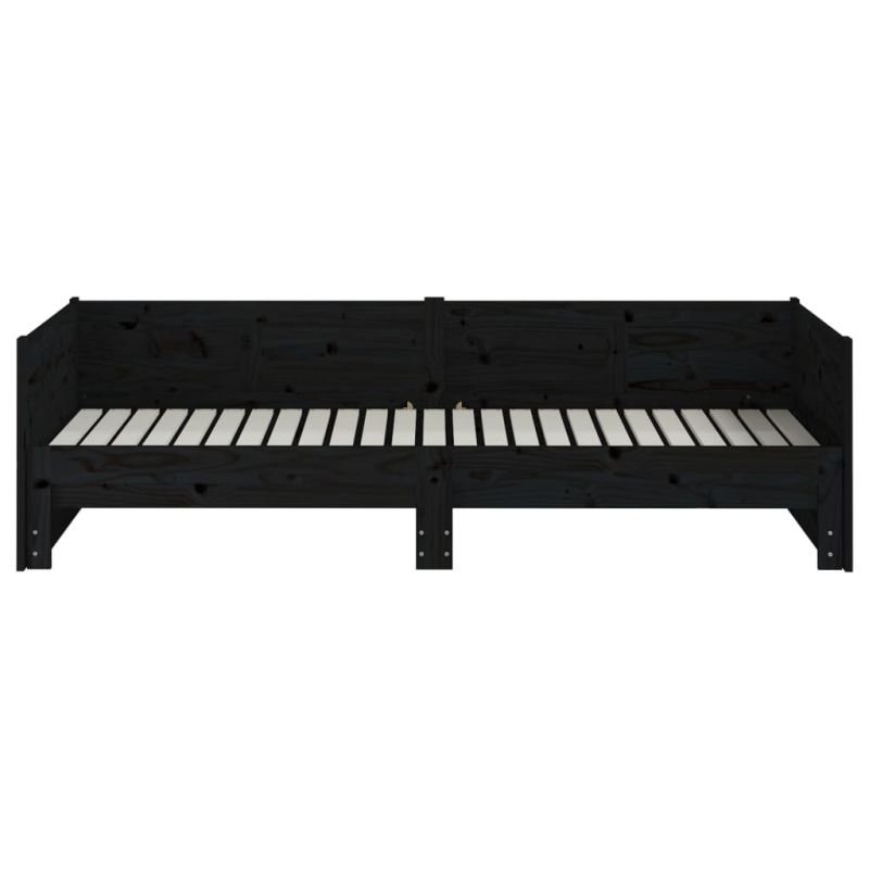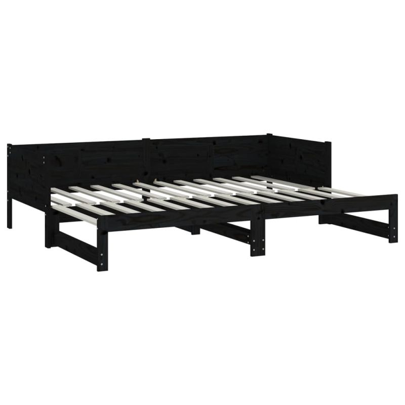 Разтегателна кушетка, черна, борово дърво масив, 2x(90x190) см