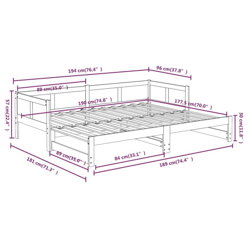 Многофункционалното дървено разтегателно легло може да се използва като диван през деня или като легло през нощта, за да предложи бързо решение за настаняване на гостите през нощта. Това практично легло-диван определено привлича вниманието, където и да бъде използвано! Масивна борова дървесина: Масивната борова дървесина е красив естествен материал. Боровата дървесина има прави шарки, а възлите придават на материала характерния му рустик вид.Конвертируем дизайн: Благодарение на разтегателната функция тази мебел може лесно да се превърне в диван през деня и в удобно легло през нощта.Функция за пестене на място: Тази рамка за дневно легло от масивна дървесина увеличава максимално наличното подово пространство, като същевременно осигурява място за сън за двама души, което го прави идеален избор за хора с ограничено жилищно пространство. Моля обърнете внимание:Тази рамка за легло разполага с дизайн с ламели и включва ламелите.Доставката включва само рамка за дневно легло. Матракът не е включен. Можете да проверите в нашия магазин за подходящи матраци.