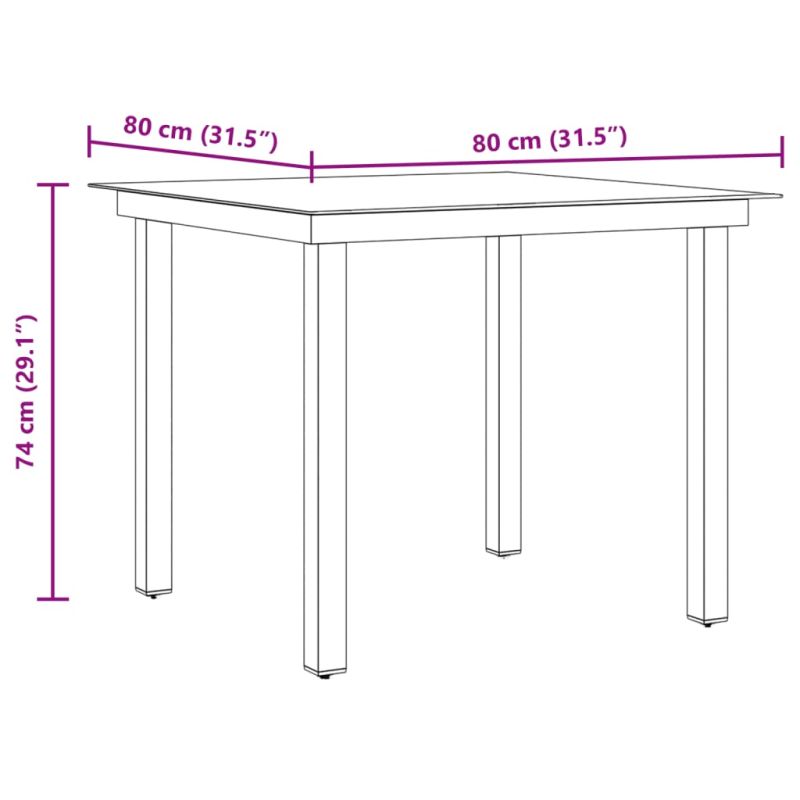 • Размери на масата: 80 x 80 x 74 см (Д x Ш x В)