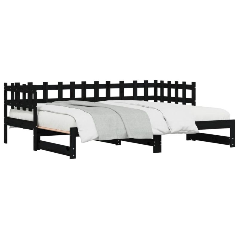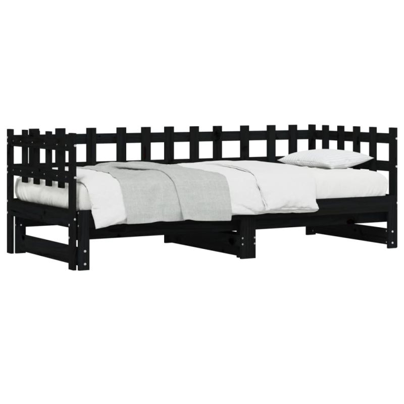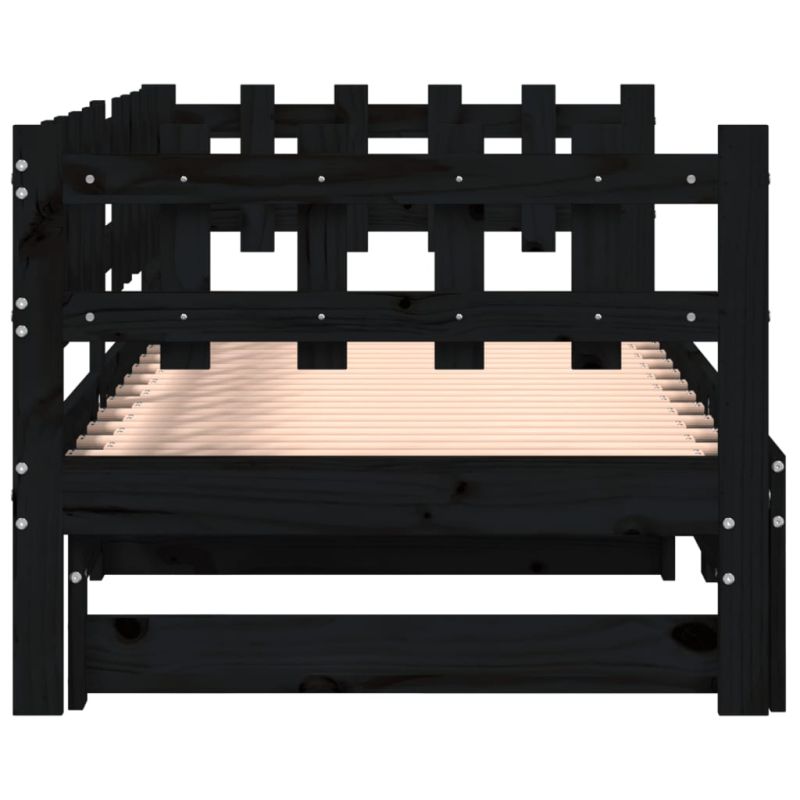 Начало Мебели Легла и аксесоари Легла и рамки за легла Разтегателна дневно легло черно 2x(90x200)см борово дърво масив