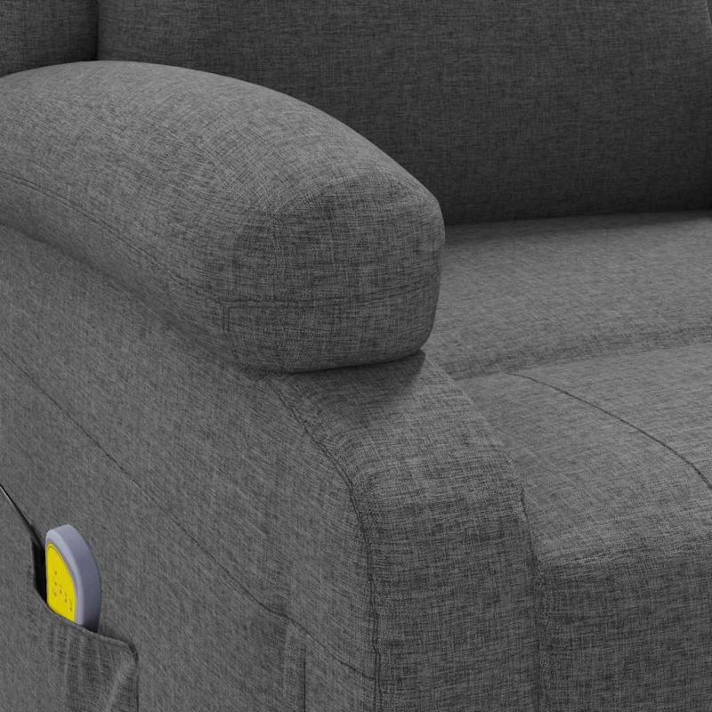 Облегнете се и се отпуснете в този изключително комфортен масажен стол! Функция за ръчно накланяне: Накланящият се стол е специално проектиран с 3 позиции на наклон, така че да можете да регулирате ръчно облегалката и поставката за крака според вашето удобство.Функция за вибрация: Представените 6 масажни точки ви позволяват да изпитате по-целенасочен масаж. Освен това включеното ръчно управление ви позволява да избирате различни програми за масаж. Функцията за масаж се захранва от USB конектор, който изисква сертифициран 5V USB захранващ източник (не е включен).Удобно седене: Дебело подплатената седалка, облегалката и широките подлакътници, покрити с текстил, осигуряват уютно и топло усещане, което ви кара да се чувствате като в прегръдка, докато седите. Тъканта се отличава със семпъл и изчистен вид и е дишаща и издръжлива.Здрава и стабилна рамка: Рамката, изработена от дърво и метал, осигурява здрава структура и стабилност. Този накланящ се фотьойл е удобен и издръжлив. Съобразете се с риска от открит огън и други източници на силна топлина в близост до продукта. Максимално 110 кг на седалка. Този продукт се захранва от DC 5V, но сертифицираният USB източник на захранване 5V не е включен в комплекта. По-високото напрежение може да доведе до прегряване на устройството и да доведе до повреда на устройството и потенциален риск от прегряване и пожар.