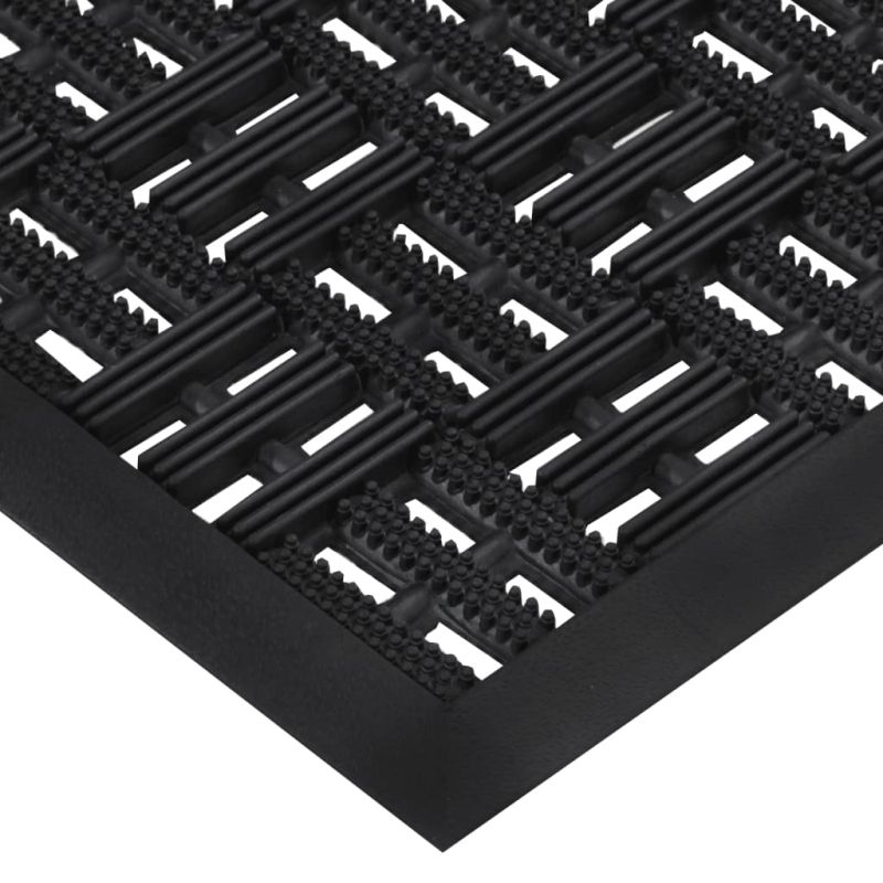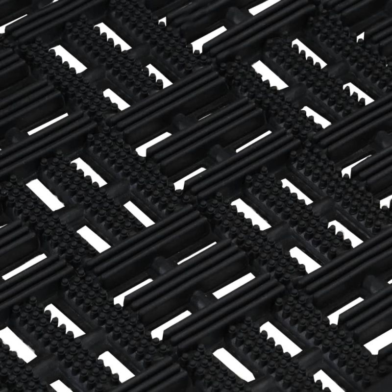 Поставете тази гумена изтривалка на пода във вашия вход и пазете мръсотията отвън! Устойчив материал: Изтривалката за входна врата е изработена от гъвкава, ударопоглъщаща, устойчива на износване гума, осигуряваща издръжливост и устойчивост на петна.Нехлъзгащ дизайн: Тази входна постелка има повдигнати върхове и оребрена текстура за по-добро сцепление и стабилност, като ефективно предотвратява всяко плъзгане по време на употреба.Дренажна функция: Тази гумена изтривалка е проектирана с дренажни отвори, които помагат за оттичане на кал, дъждовна вода или петна от вода от обувките. Освен това се почиства лесно – просто изплакнете с вода!Широки приложения: Тази гумена постелка може да се използва както на закрито, така и на открито, като например в барове, кухни, ресторанти, складове, градини и други влажни и гъсто населени индустриални зони.