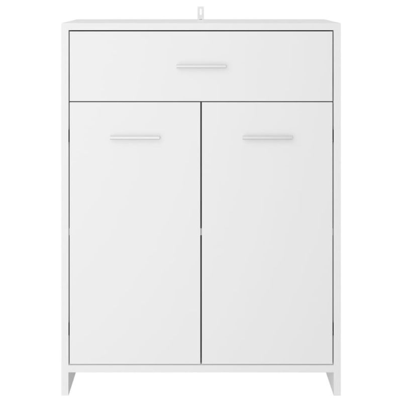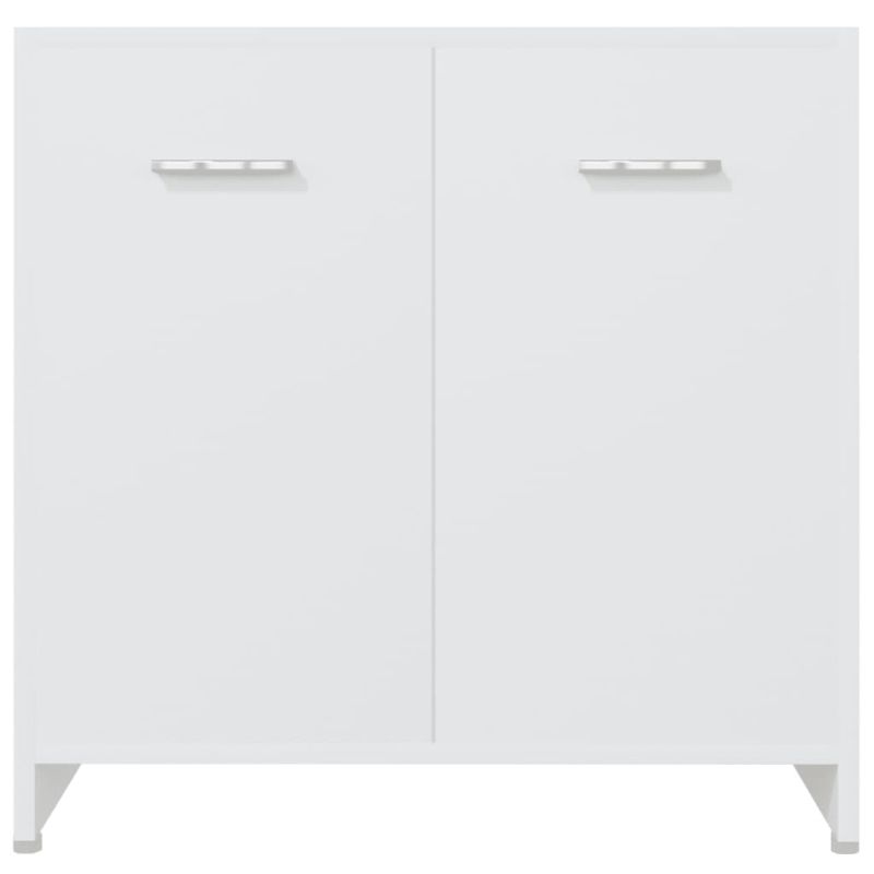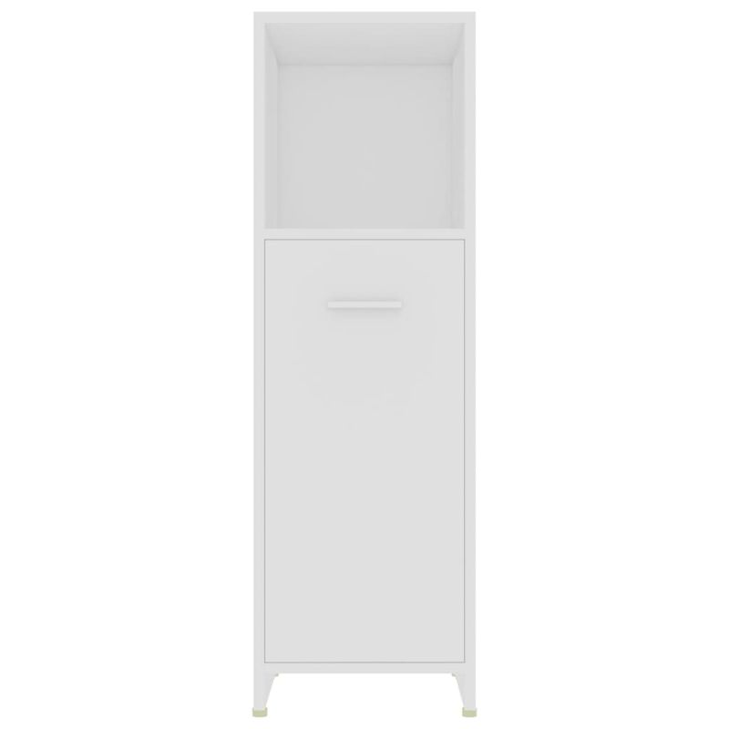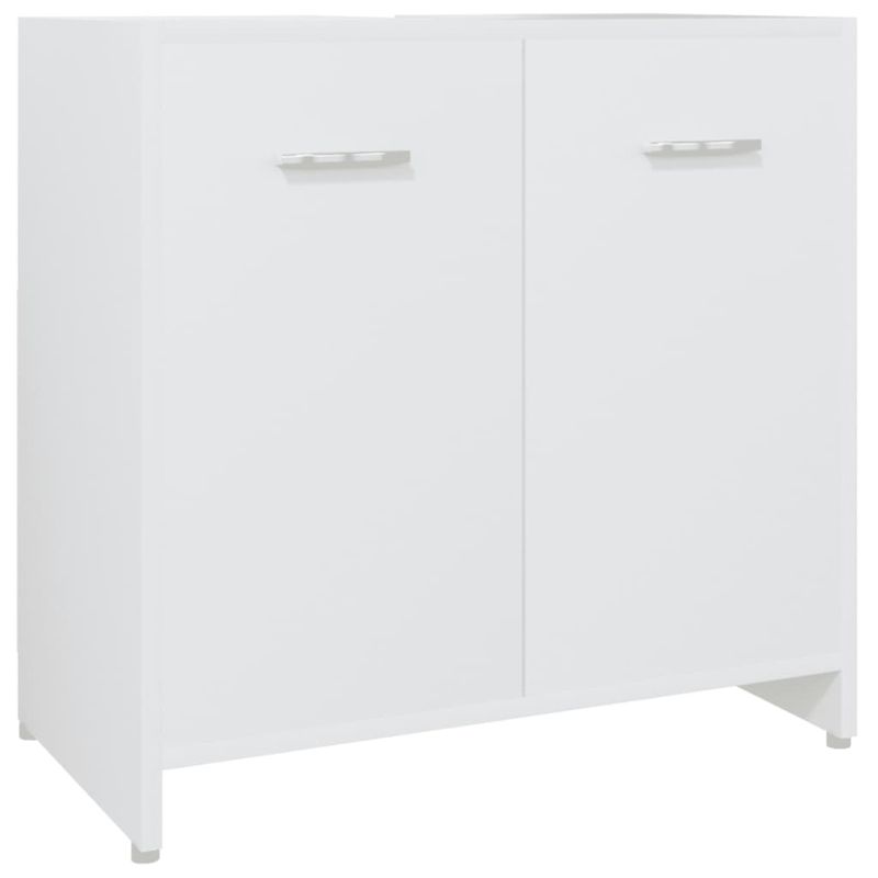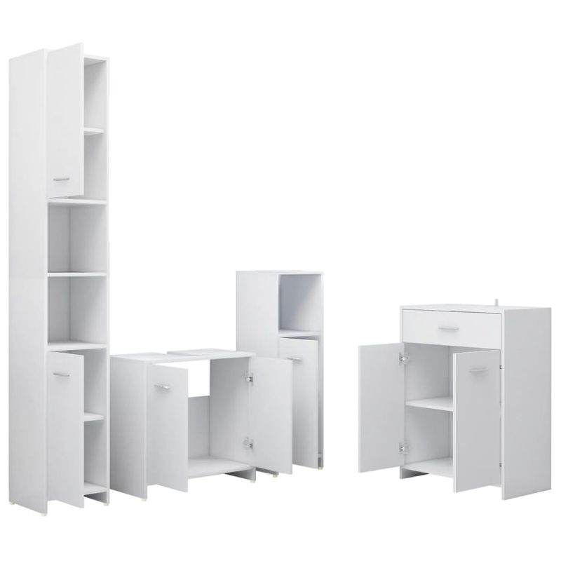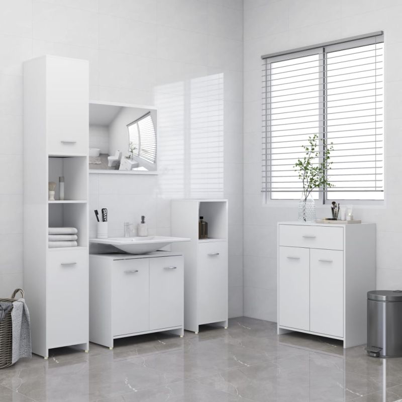 С този комплект мебели за баня от 4 части можете да създадете допълнително място за съхранение в банята с впечатляващ и подреден вид. Изчистените линии и елегантният дизайн се вписват перфектно във вашата баня. Този комплект съдържа шкаф за баня, шкаф за мивка, нисък шкаф и висок шкаф. Тези шкафове предлагат различни възможности за съхранение и допълнително пространство за съхранение на вещи във вашата баня. Освен това комплектът се почиства лесно с влажна кърпа.