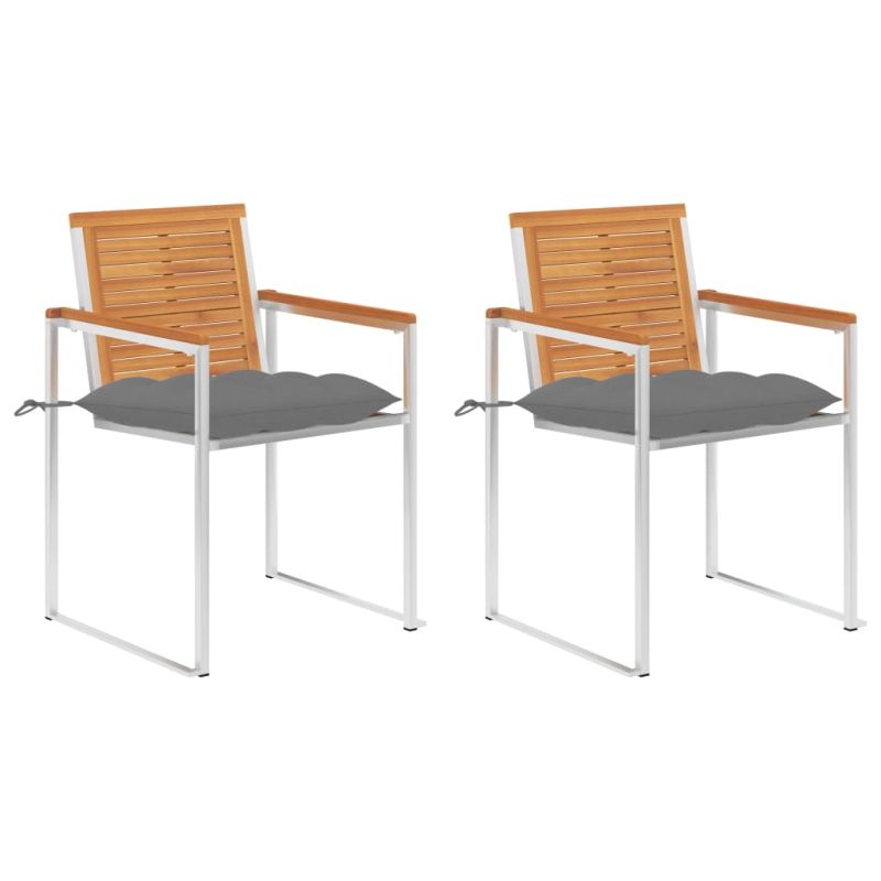 Градински столове с възглавници, 2 бр, акация масив и стомана