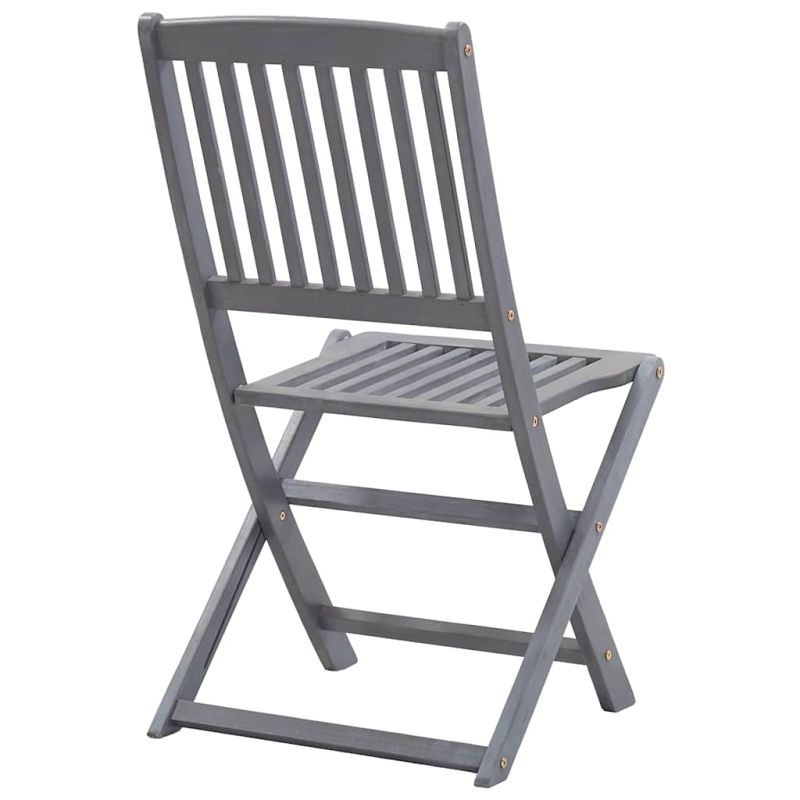 Този модерен комплект дървени трапезни столове с възглавници ще добави щрих на естествен стил към градината, терасата или вътрешния двор. Този комплект сгъваеми столове ще бъде чудесен избор за вечеря. Трапезните столове са изработени от масивно акациево дърво – тропическа твърда дървесина, която ги прави устойчиви на атмосферни влияния и издръжливи за дългогодишна употреба. Масивната акациева дървесина има силата да понесе тежестта и да издържи на износването на времето. Сивата избелена повърхност се почиства лесно с влажна кърпа. Столовете могат да се сгъват, за да пестят място, когато не се използват. Освен това включените възглавници осигуряват допълнителен комфорт при почивка или хранене. Всяка възглавница разполага с два комплекта връзки за плътно закрепване към стола. Максимално 110 кг на седалка.
