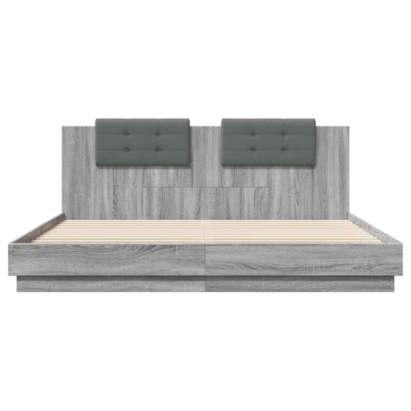 Рамка за легло с табла, сив сонома, 180x200 см, инженерно дърво
