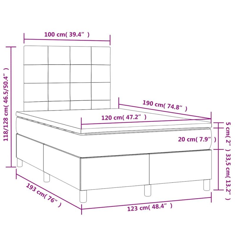 Боксспринг легло с матрак и LED, синьо, 120x190 см, текстил