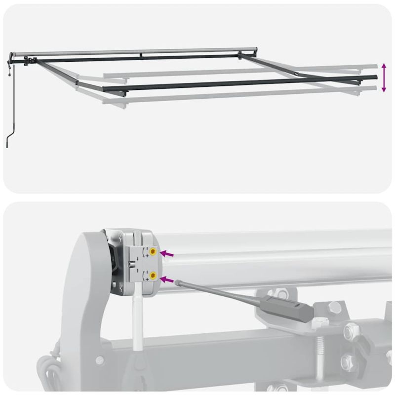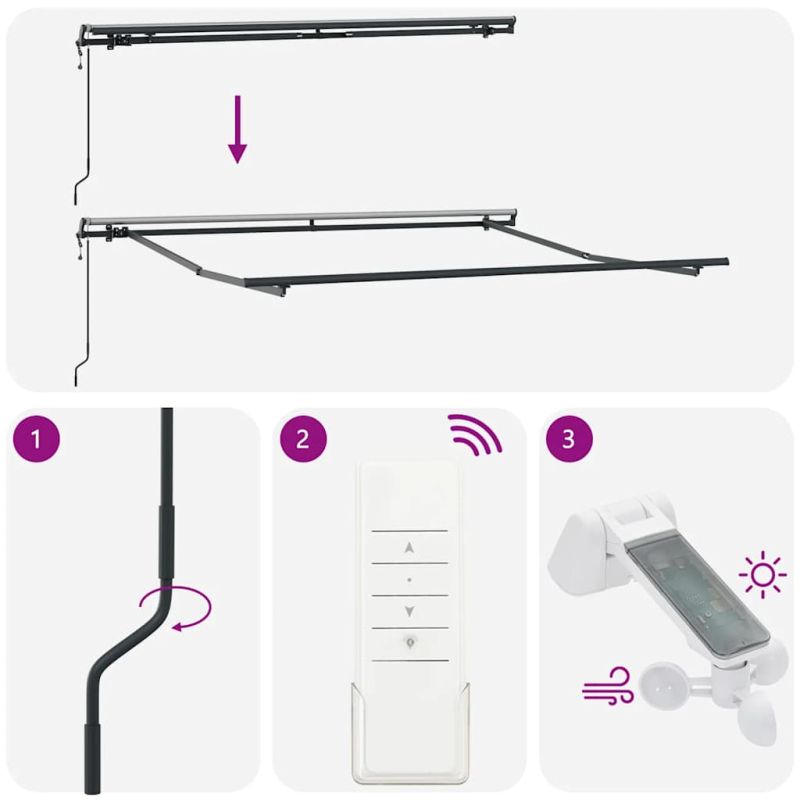 Създайте хубаво и прохладно място във вашия двор и се предпазете от ултравиолетовите лъчи с тази прибираща се тента! Издръжлив материал: Рамката на сенника е изработена от прахово боядисан алуминий, който е здрав и издръжлив. Тъканта с PU повърхностна обработка е UV устойчива. Тя ще предпази вашето семейство или гости от UV лъчи и ослепителна слънчева светлина.Автоматична функция: Можете лесно да отваряте и прибирате тентата чрез включеното дистанционно управление.Лесен за работа: Ъгълът и височината могат да се регулират, за да отговорят на вашите различни нужди. Можете да отваряте и прибирате тентата плавно с дългата манивела.Широки приложения: Прибиращата се тента се отличава с прост, стилен дизайн, който ще се слее добре с вашия дом или търговски обекти. Подходящ е за различни места, като тераси, вътрешни дворове, ресторанти, кафенета, магазини и др. Децата трябва да бъдат наблюдавани, за да се гарантира, че няма да си играят с уреда. Пазете децата далеч от зоната за сглобяване.Внимание: Прочетете внимателно инструкциите преди употреба и ги запазете за по-нататъшни справки.