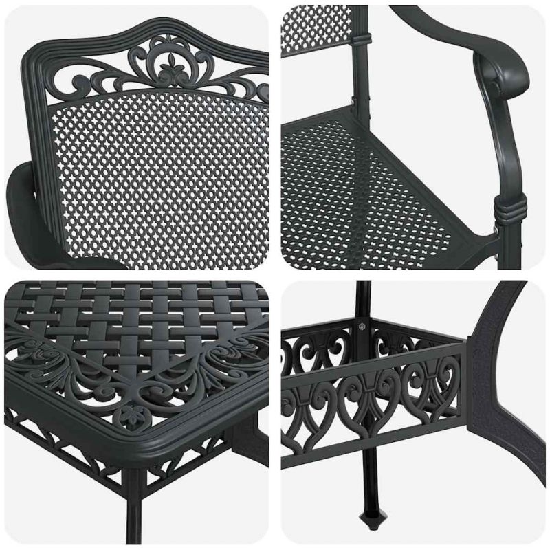 Комплектът за градински трапезарии от отлято алюминий е невероятен акцент за открито, който комбинира традиционен дизайн с полезна функционалност. Идеален е за летни и пролетни събирания, като добавя класически чар към всяка градина или тераса. Просторната правоъгълна маса предлага комфортно място за до шест човека, което я прави перфектна за всекидневни ястия и специални събития. Издръжливост: Направен изцяло от алуминий, този комплект за хранене е доказателство за надеждност и дълготрайност. Алуминият устоява на ежедневна употреба и неблагоприятни условия, като обещава години на безпроблемно ползване. Изграждане с устойчивост на времето: С повърхност, устойчива на атмосферни влияния, този градински комплект е направен специално за открито. Алуминият не поврежда, гарантирайки, че мебелите остават здрави и визиално привлекателни във всеки сезон. Пълно решение за сядане: Комплектът за хранене включва удобна облегалка и плоски подлакътници, което добавя комфорт за дълго изплъзване в седалките. Изчистените линии подчертават традиционното усещане. Лесно сглобяване: Предназначен за ръчно дело, комплектът изисква сглобяване само с отвертка. Нужни са усилия от двама, но сглобяването е толкова просто, че го прави лесно и удобно. Практични съвети за грижа: За да запазите перфектния вид на комплекта, използвайте покривало, когато не е в употреба, и просто го избърсвайте с влажна кърпа. Тези минимални грижи правят комплекта не само избор за сега, а надеждно присъствие и в бъдеще.