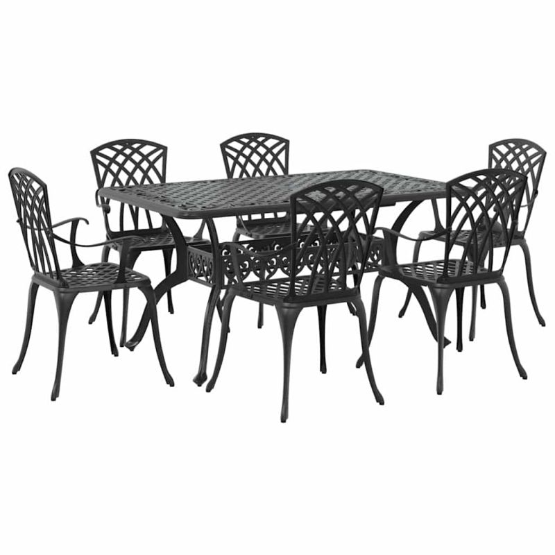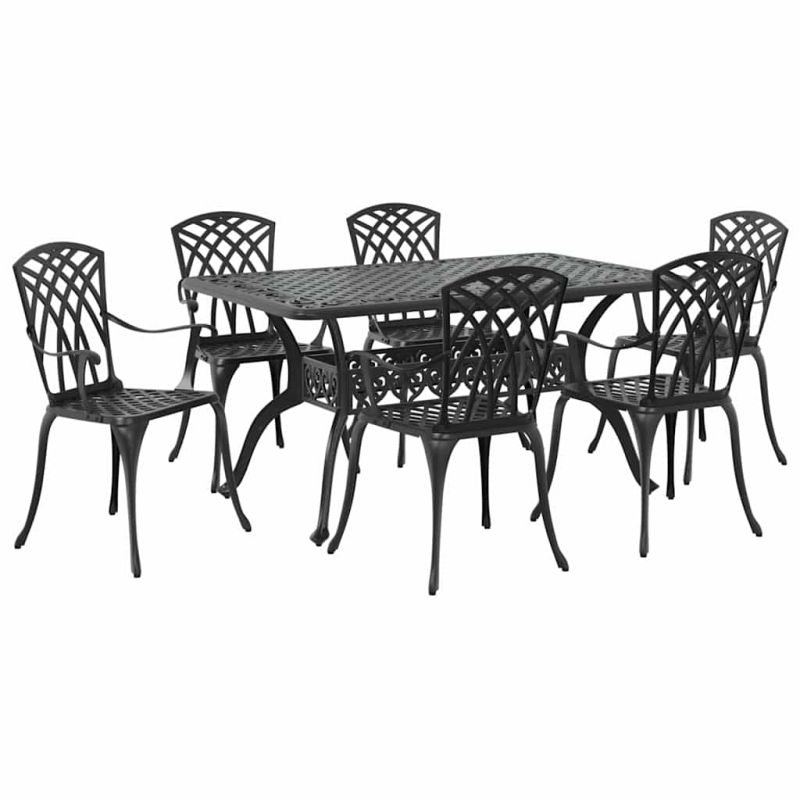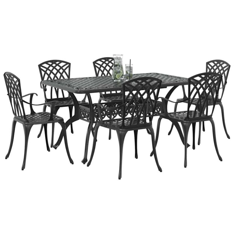Комплектът за градински трапезарии от отлято алюминий е невероятен акцент за открито, който комбинира традиционен дизайн с полезна функционалност. Идеален е за летни и пролетни събирания, като добавя класически чар към всяка градина или тераса. Просторната правоъгълна маса предлага комфортно място за до шест човека, което я прави перфектна за всекидневни ястия и специални събития. Издръжливост: Направен изцяло от алуминий, този комплект за хранене е доказателство за надеждност и дълготрайност. Алуминият устоява на ежедневна употреба и неблагоприятни условия, като обещава години на безпроблемно ползване. Изграждане с устойчивост на времето: С повърхност, устойчива на атмосферни влияния, този градински комплект е направен специално за открито. Алуминият не поврежда, гарантирайки, че мебелите остават здрави и визиално привлекателни във всеки сезон. Пълно решение за сядане: Комплектът за хранене включва удобна облегалка и плоски подлакътници, което добавя комфорт за дълго изплъзване в седалките. Изчистените линии подчертават традиционното усещане. Лесно сглобяване: Предназначен за ръчно дело, комплектът изисква сглобяване само с отвертка. Нужни са усилия от двама, но сглобяването е толкова просто, че го прави лесно и удобно. Практични съвети за грижа: За да запазите перфектния вид на комплекта, използвайте покривало, когато не е в употреба, и просто го избърсвайте с влажна кърпа. Тези минимални грижи правят комплекта не само избор за сега, а надеждно присъствие и в бъдеще.