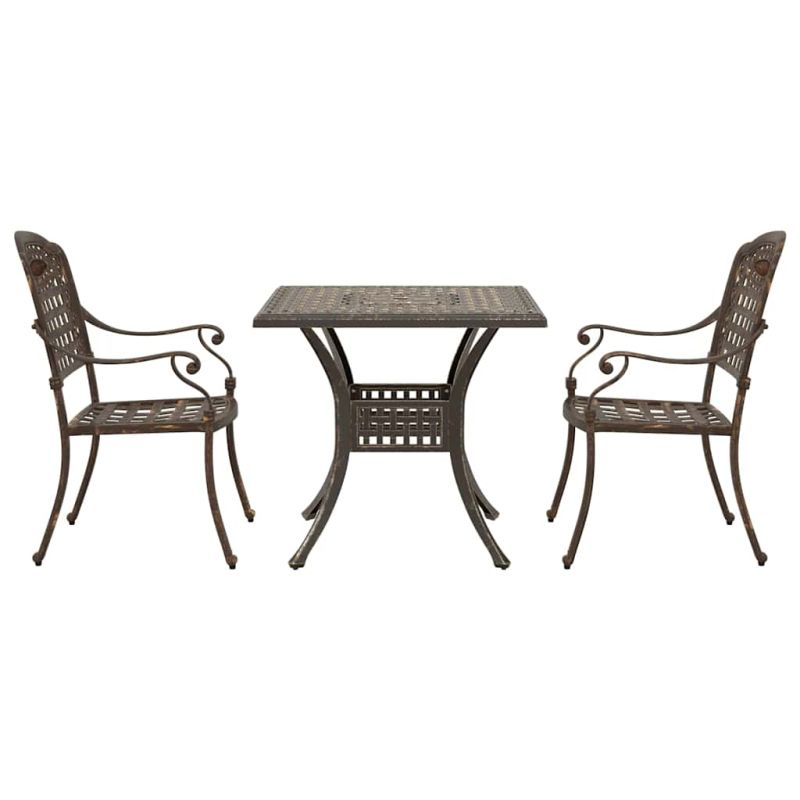 Комплект градинска маса 3 pcs Бронзов Лят алуминий