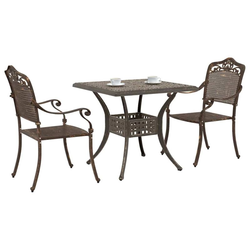 Комплект градинска маса 3 pcs Бронзов Лят алуминий