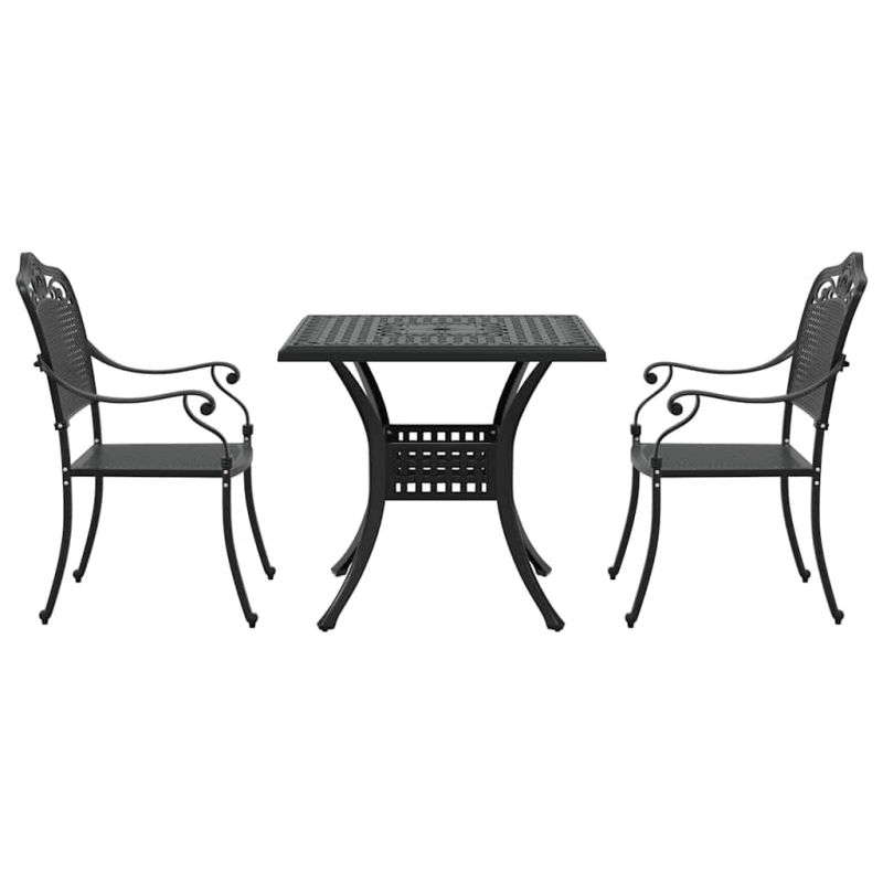 Комплект градинска маса 3 pcs Черно Лят алуминий