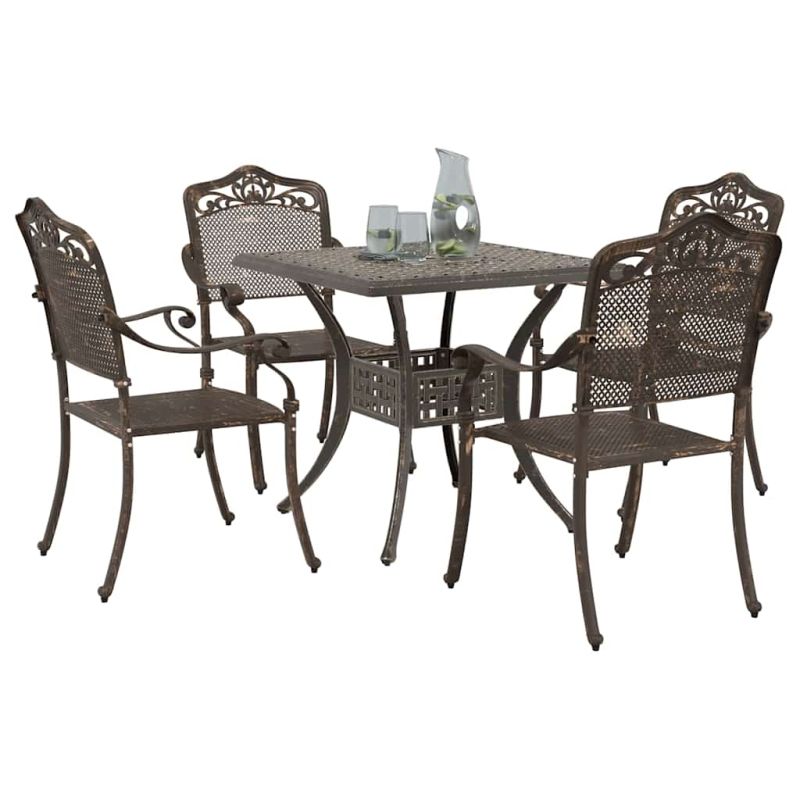 Комплект градинска маса 5 pcs Бронзов Лят алуминий