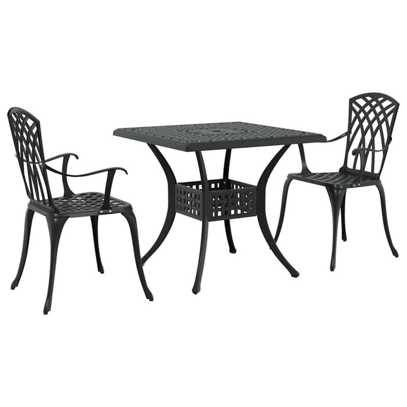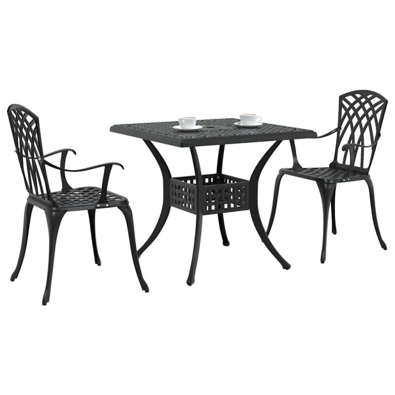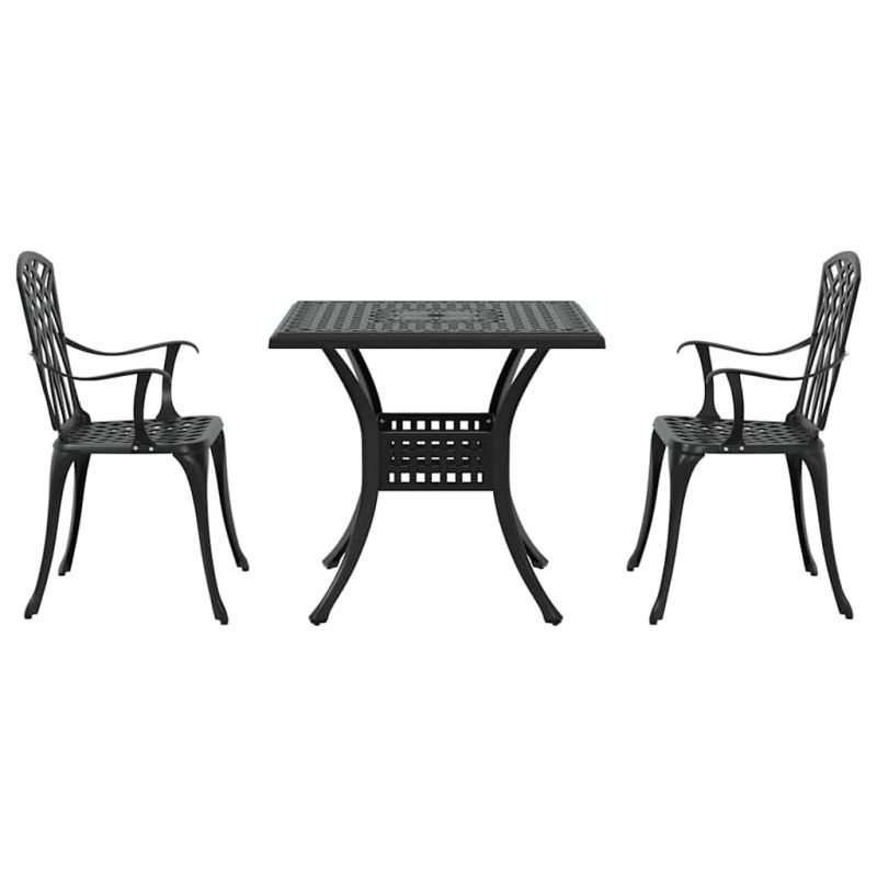 Комплект градинска маса 3 pcs Черно Лят алуминий