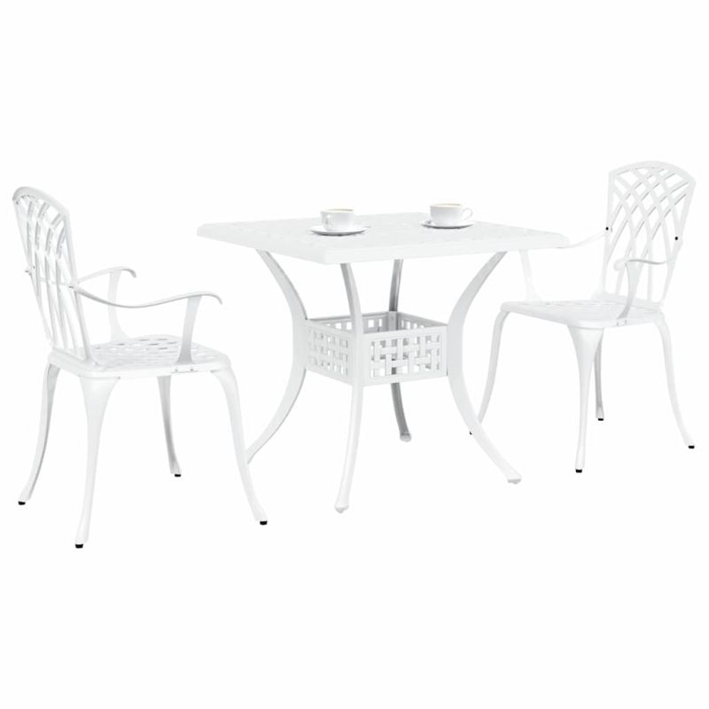 Комплект градинска маса 3 pcs Бяло Лят алуминий